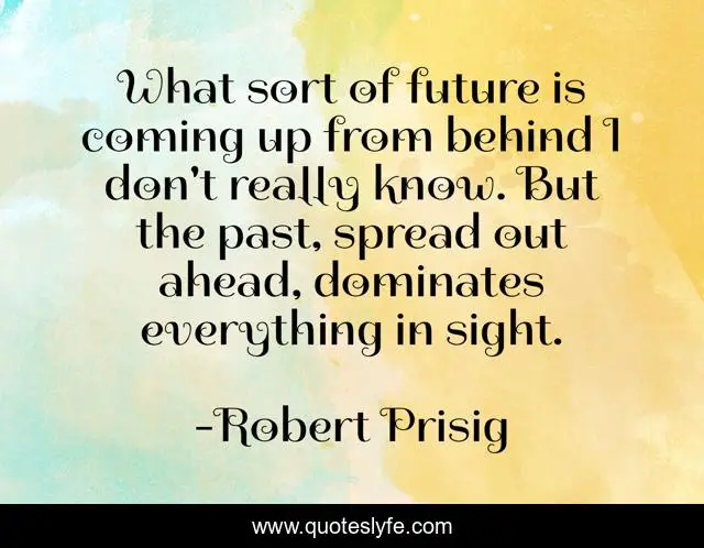 This page presents the quote "What sort of future is coming up from behind I don't really know. But the past, spread out ahead, dominates everything in sight.". Author of this quote is Robert Prisig. .