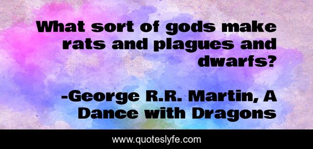 This page presents the quote "What sort of gods make rats and plagues and dwarfs?". Author of this quote is George R.R. Martin, A Dance with Dragons. This quote is about gods, plagues, rats, dwarfs,.