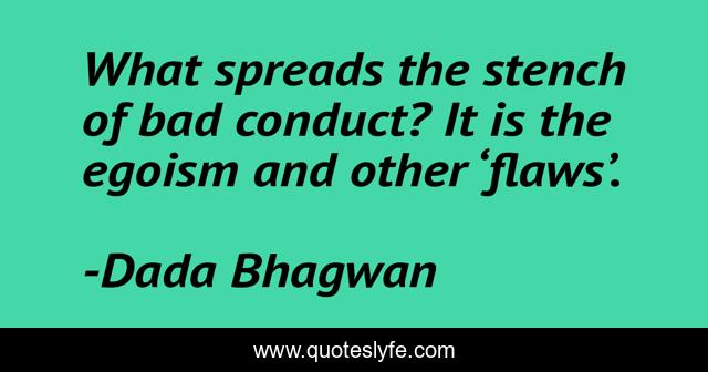 This page presents the quote "What spreads the stench of bad conduct? It is the egoism and other ‘flaws’.". Author of this quote is Dada Bhagwan. This quote is about spiritual, flaws, fault, egoism, faults, ego,.
