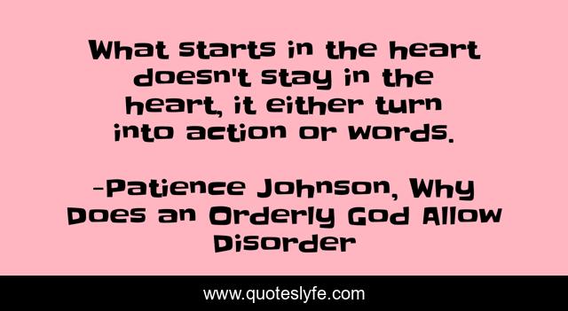 "Patience Johnson, Why Does an Orderly God Allow Disorder Quotes." Quoteslyfe.com, 2025. Fri. 05 Dec. 2025. <https://www.quoteslyfe.com/quote/What-starts-in-the-heart-doesn-t-33992>.