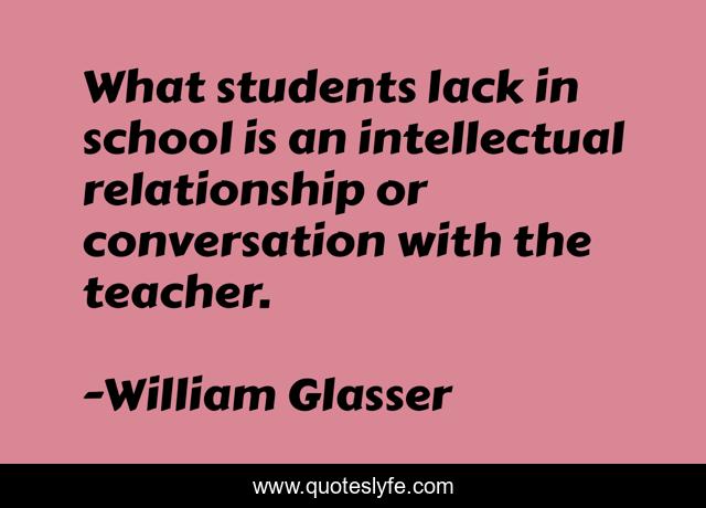 This page presents the quote "What students lack in school is an intellectual relationship or conversation with the teacher.". Author of this quote is William Glasser. This quote is about school, relationship,.