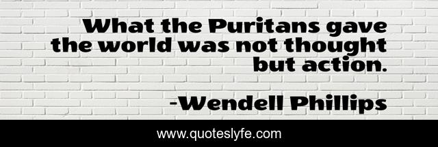 This page presents the quote "What the Puritans gave the world was not thought but action.". Author of this quote is Wendell Phillips. This quote is about going, getting,.