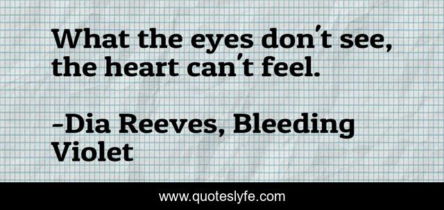 This page presents the quote "What the eyes don't see, the heart can't feel.". Author of this quote is Dia Reeves, Bleeding Violet. This quote is about love, pain, affection,.
