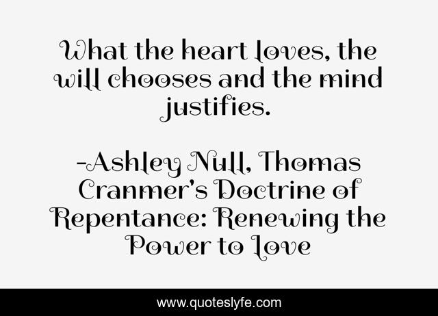 "Ashley Null, Thomas Cranmer's Doctrine of Repentance: Renewing the Power to Love Quotes." Quoteslyfe.com, 2025. Fri. 05 Dec. 2025. <https://www.quoteslyfe.com/quote/What-the-heart-loves-the-will-chooses-201692>.