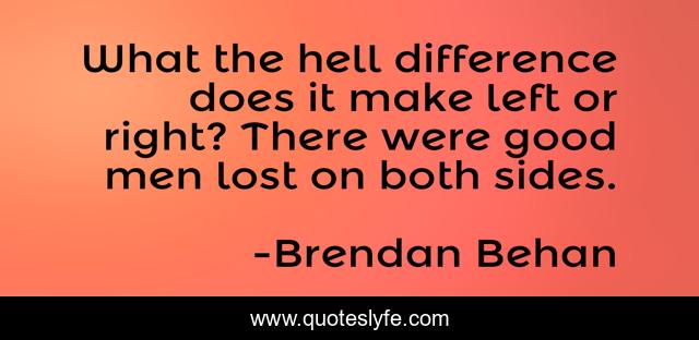 This page presents the quote "What the hell difference does it make left or right? There were good men lost on both sides.". Author of this quote is Brendan Behan. .