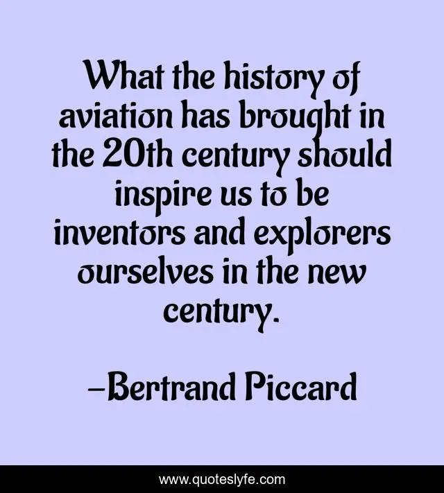 This page presents the quote "What the history of aviation has brought in the 20th century should inspire us to be inventors and explorers ourselves in the new century.". Author of this quote is Bertrand Piccard. This quote is about aviation, inspire, new,.