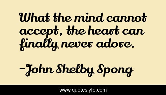 This page presents the quote "What the mind cannot accept, the heart can finally never adore.". Author of this quote is John Shelby Spong. This quote is about ontology, christian, epistimology, theology,.