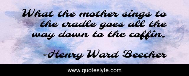 This page presents the quote "What the mother sings to the cradle goes all the way down to the coffin.". Author of this quote is Henry Ward Beecher. .
