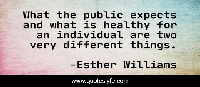 This page presents the quote "What the public expects and what is healthy for an individual are two very different things.". Author of this quote is Esther Williams. This quote is about healthy, individual,.