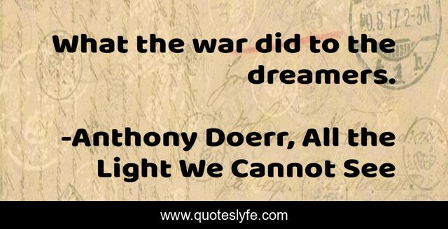 "Anthony Doerr, All the Light We Cannot See Quotes." Quoteslyfe.com, 2025. Fri. 05 Dec. 2025. <https://www.quoteslyfe.com/quote/What-the-war-did-to-the-dreamers-52775>.