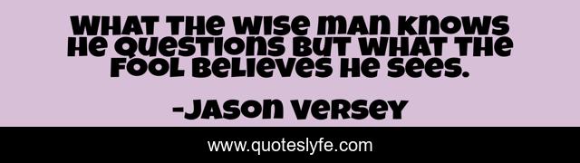 This page presents the quote "What the wise man knows he questions but what the fool believes he sees.". Author of this quote is Jason Versey. This quote is about knowing, belief,.