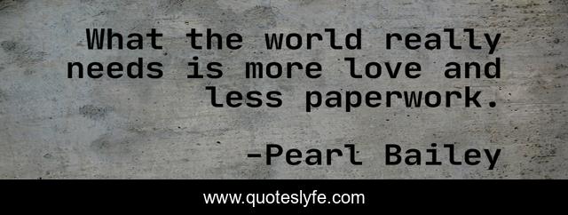 This page presents the quote "What the world really needs is more love and less paperwork.". Author of this quote is Pearl Bailey. .
