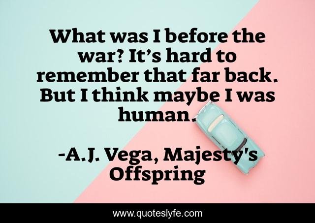This page presents the quote "What was I before the war? It’s hard to remember that far back. But I think maybe I was human.". Author of this quote is A.J. Vega, Majesty's Offspring. .