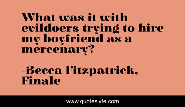 This page presents the quote "What was it with evildoers trying to hire my boyfriend as a mercenary?". Author of this quote is Becca Fitzpatrick, Finale. .