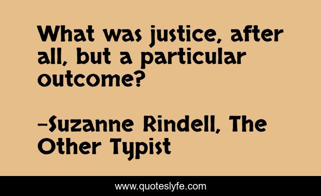 This page presents the quote "What was justice, after all, but a particular outcome?". Author of this quote is Suzanne Rindell, The Other Typist. This quote is about feminism, historical-fiction-mystery, psychological-thriller, fiction,.