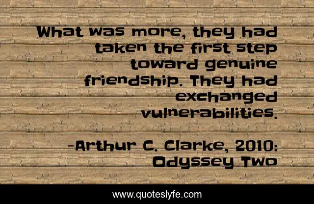 This page presents the quote "What was more, they had taken the first step toward genuine friendship. They had exchanged vulnerabilities.". Author of this quote is Arthur C. Clarke, 2010: Odyssey Two. .