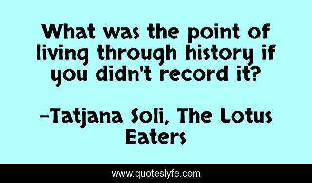 This page presents the quote "What was the point of living through history if you didn't record it?". Author of this quote is Tatjana Soli, The Lotus Eaters. .
