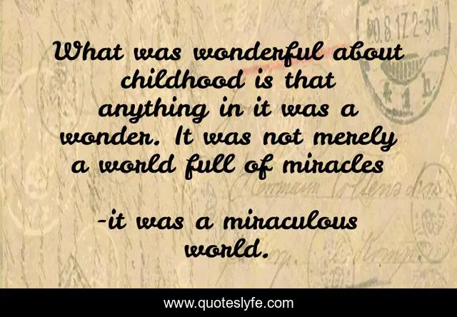 "it was a miraculous world. Quotes." Quoteslyfe.com, 2025. Mon. 08 Dec. 2025. <https://www.quoteslyfe.com/quote/What-was-wonderful-about-childhood-is-that-190823>.