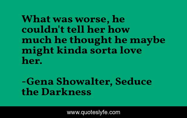 This page presents the quote "What was worse, he couldn't tell her how much he thought he maybe might kinda sorta love her.". Author of this quote is Gena Showalter, Seduce the Darkness. This quote is about funny, alien-huntress, comedy, love, affection,.