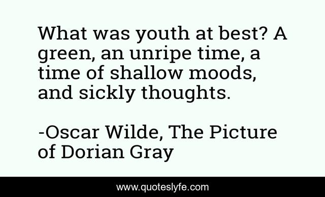 This page presents the quote "What was youth at best? A green, an unripe time, a time of shallow moods, and sickly thoughts.". Author of this quote is Oscar Wilde, The Picture of Dorian Gray. .