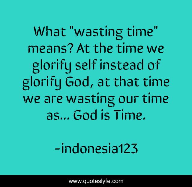 What "wasting time" means? At the time we glorify self instead of glorify God, at that time we are wasting our time as... God is Time.