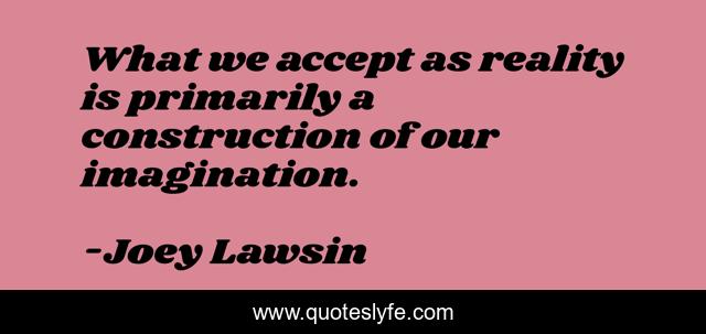 This page presents the quote "What we accept as reality is primarily a construction of our imagination.". Author of this quote is Joey Lawsin. This quote is about enthusiasm, reason, inspirational, reality,.