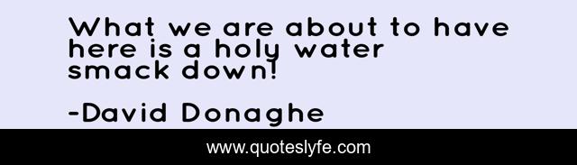 This page presents the quote "What we are about to have here is a holy water smack down!". Author of this quote is David Donaghe. This quote is about zombie, short-stories, vampire,.