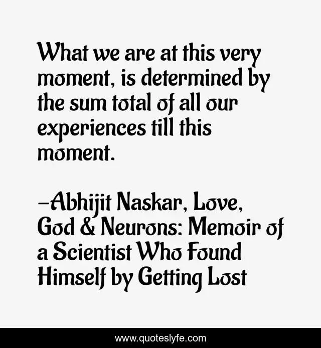 "Abhijit Naskar, Love, God & Neurons: Memoir of a Scientist Who Found Himself by Getting Lost Quotes." Quoteslyfe.com, 2025. Fri. 05 Dec. 2025. <https://www.quoteslyfe.com/quote/What-we-are-at-this-very-moment-158627>.