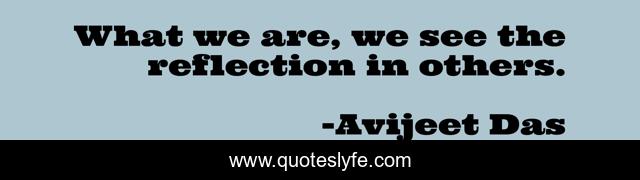 This page presents the quote "What we are, we see the reflection in others.". Author of this quote is Avijeet Das. This quote is about meaning-of-life, love-and-sayings, relationship, reflection,.