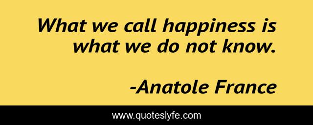 This page presents the quote "What we call happiness is what we do not know.". Author of this quote is Anatole France. .