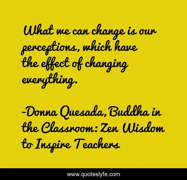 "Donna Quesada, Buddha in the Classroom: Zen Wisdom to Inspire Teachers Quotes." Quoteslyfe.com, 2025. Fri. 05 Dec. 2025. <https://www.quoteslyfe.com/quote/What-we-can-change-is-our-perceptions-14343>.
