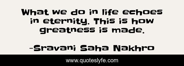 This page presents the quote "What we do in life echoes in eternity. This is how greatness is made.". Author of this quote is Sravani Saha Nakhro. .