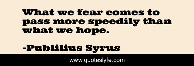 "Publilius Syrus Quotes." Quoteslyfe.com, 2025. Sat. 06 Dec. 2025. <https://www.quoteslyfe.com/quote/What-we-fear-comes-to-pass-more-260226>.
