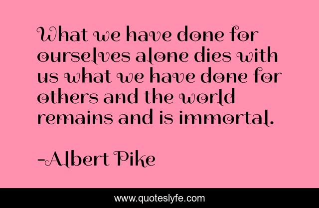 This page presents the quote "What we have done for ourselves alone dies with us what we have done for others and the world remains and is immortal.". Author of this quote is Albert Pike. This quote is about alone, world, done,.
