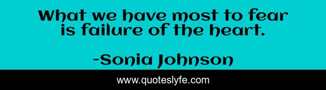 This page presents the quote "What we have most to fear is failure of the heart.". Author of this quote is Sonia Johnson. This quote is about failures, mistakes,.