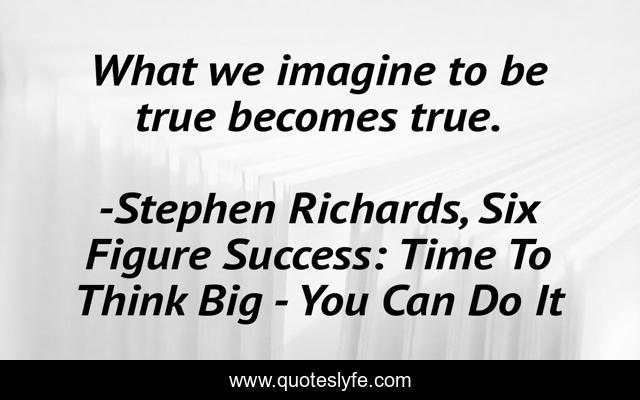 "Stephen Richards, Six Figure Success: Time To Think Big - You Can Do It Quotes." Quoteslyfe.com, 2025. Mon. 08 Dec. 2025. <https://www.quoteslyfe.com/quote/What-we-imagine-to-be-true-becomes-78097>.