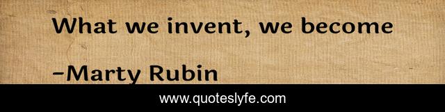 This page presents the quote "What we invent, we become". Author of this quote is Marty Rubin. This quote is about invention, identity,.
