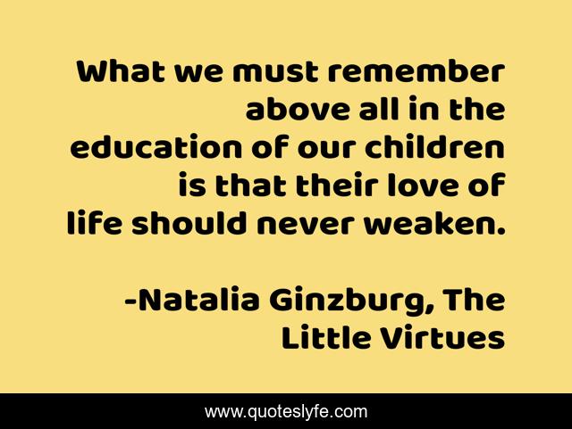 This page presents the quote "What we must remember above all in the education of our children is that their love of life should never weaken.". Author of this quote is Natalia Ginzburg, The Little Virtues. .