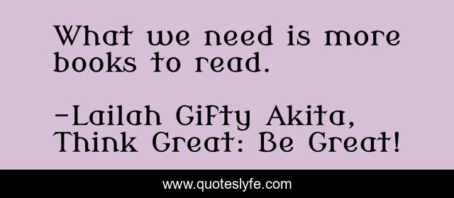 "Lailah Gifty Akita, Think Great: Be Great! Quotes." Quoteslyfe.com, 2025. Sat. 06 Dec. 2025. <https://www.quoteslyfe.com/quote/What-we-need-is-more-books-to-95143>.