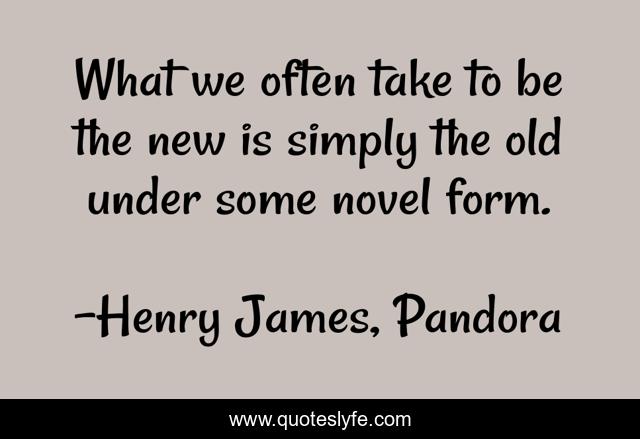 This page presents the quote "What we often take to be the new is simply the old under some novel form.". Author of this quote is Henry James, Pandora. This quote is about novella, short-story, lierature, fiction,.