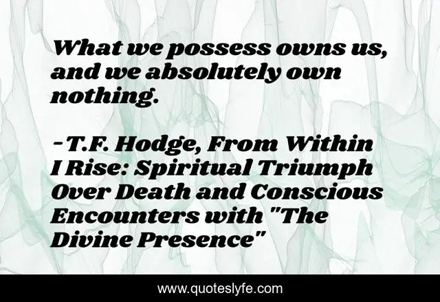 "T.F. Hodge, From Within I Rise: Spiritual Triumph Over Death and Conscious Encounters with "The Divine Presence" Quotes." Quoteslyfe.com, 2025. Sat. 06 Dec. 2025. <https://www.quoteslyfe.com/quote/What-we-possess-owns-us-and-we-211870>.
