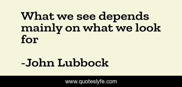 This page presents the quote "What we see depends mainly on what we look for". Author of this quote is John Lubbock. This quote is about see, perception, perceive, vision,.