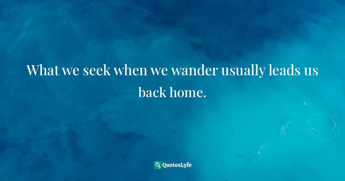 This page presents the quote "What we seek when we wander usually leads us back home.". Author of this quote is Gina Greenlee, Postcards and Pearls: Life Lessons from Solo Moments on the Road. This quote is about home, seeking, wandering, bliss, wanderlust,.