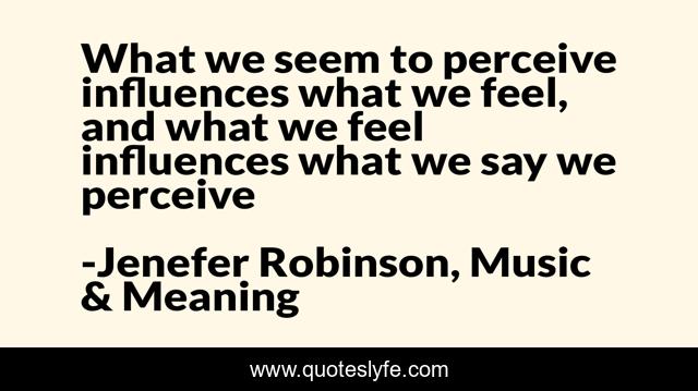 "Jenefer Robinson, Music & Meaning Quotes." Quoteslyfe.com, 2025. Sat. 06 Dec. 2025. <https://www.quoteslyfe.com/quote/What-we-seem-to-perceive-influences-what-79301>.