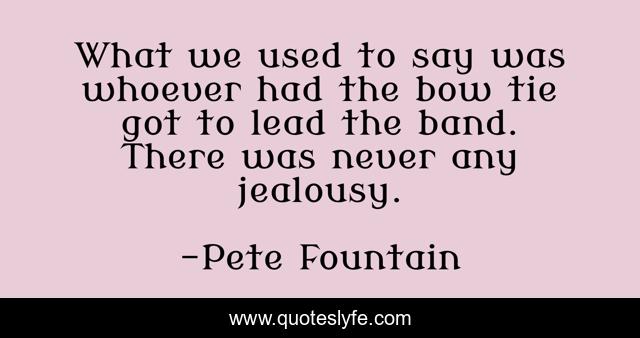 This page presents the quote "What we used to say was whoever had the bow tie got to lead the band. There was never any jealousy.". Author of this quote is Pete Fountain. This quote is about band, lead,.