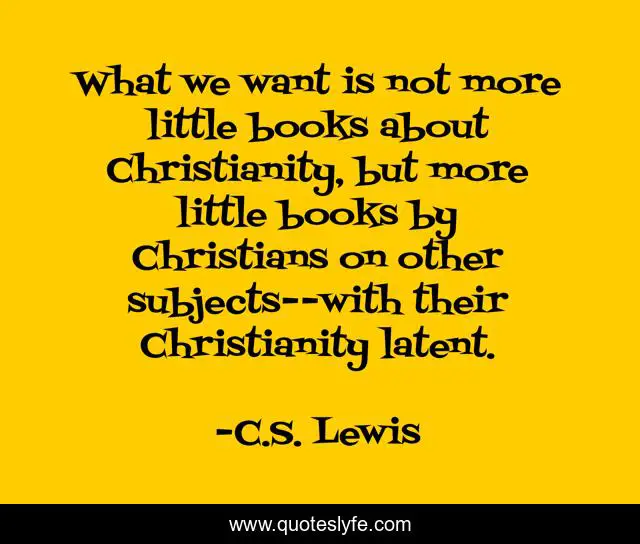 This page presents the quote "What we want is not more little books about Christianity, but more little books by Christians on other subjects--with their Christianity latent.". Author of this quote is C.S. Lewis. This quote is about religion, christianity,.