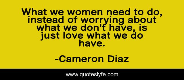 This page presents the quote "What we women need to do, instead of worrying about what we don't have, is just love what we do have.". Author of this quote is Cameron Diaz. This quote is about need, love, just, affection,.