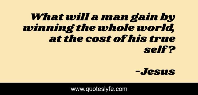 This page presents the quote "What will a man gain by winning the whole world, at the cost of his true self?". Author of this quote is Jesus. This quote is about enthusiasm, be-true-to-yourself, integrity, honesty, inspirational,.