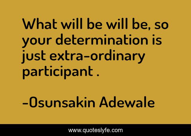 This page presents the quote "What will be will be, so your determination is just extra-ordinary participant .". Author of this quote is Osunsakin Adewale. .