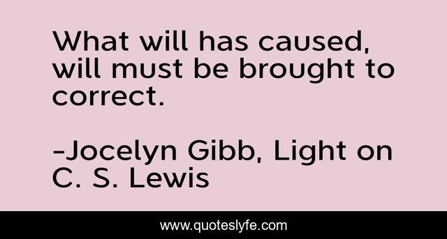 This page presents the quote "What will has caused, will must be brought to correct.". Author of this quote is Jocelyn Gibb, Light on C. S. Lewis. This quote is about cs-lewis, christianity,.